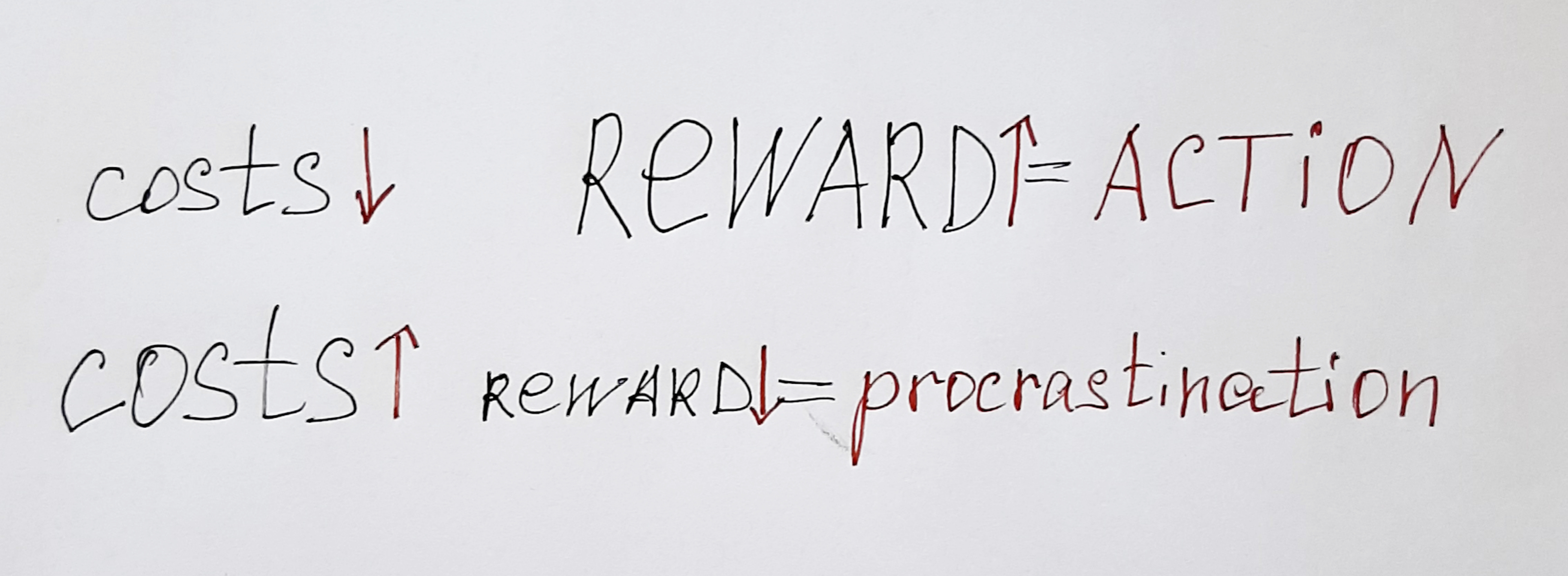 When you procrastinate - your brain concluded (without consulting you), that the reward is gonna drain your energy account, possibly threatening your survival. As a result, you don’t get any “fuel” (brain's chemicals, actual energy released etc) to get things done. As a result, you delay the action, basically, you procrastinate.